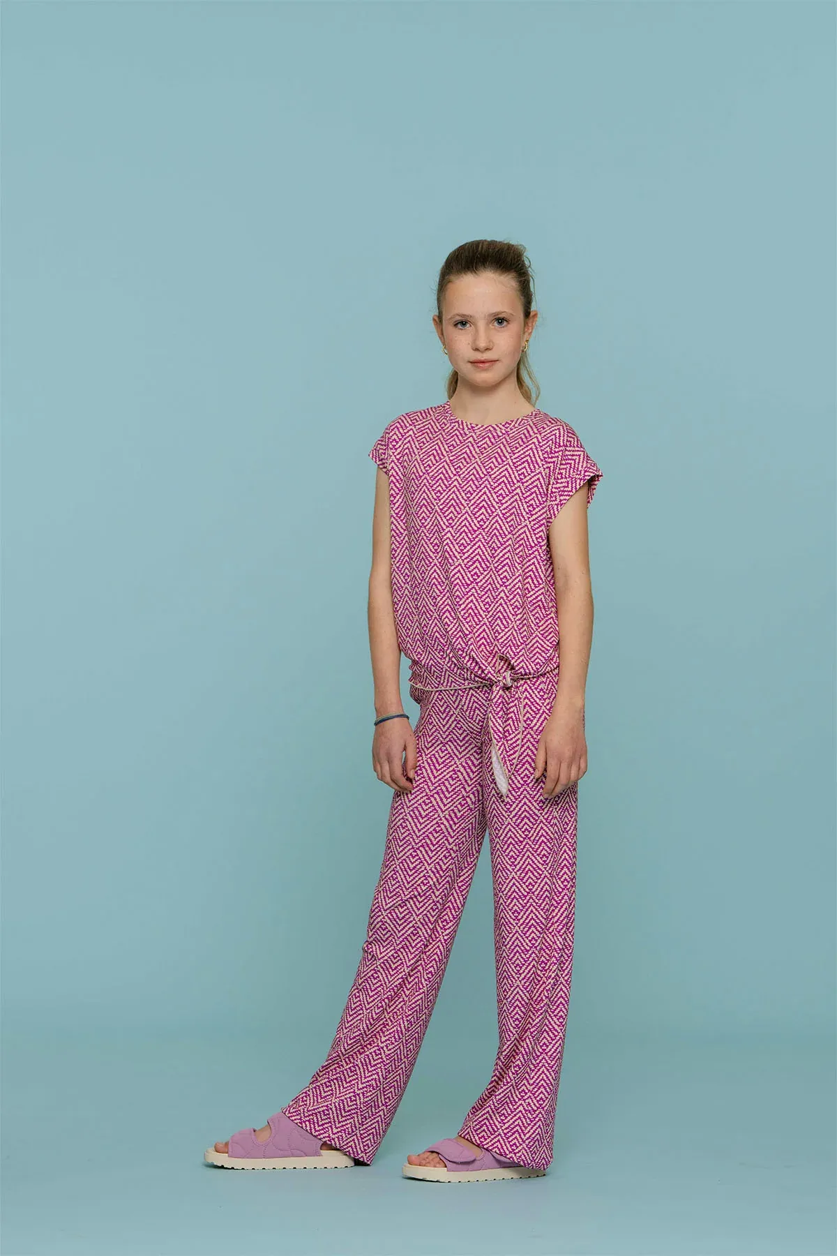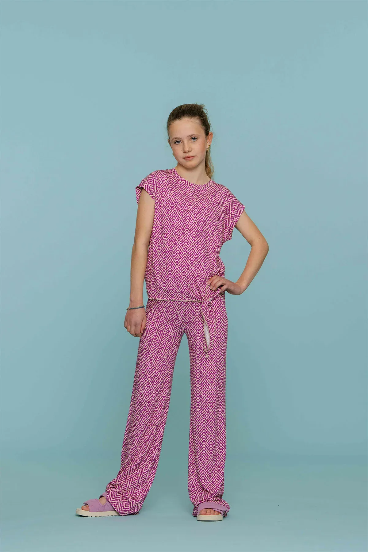 Deze stijlvolle flared broek voor meisjes van Geisha is een must-have voor de zomer! Met een vrolijke blokprint en een comfortabele pasvorm biedt de broek zowel flair als vrijheid. Het luchtige materiaal is perfect voor warme dagen, terwijl de flared stijl zorgt voor een modieuze, retro uitstraling. Ideaal te combineren met een simpel T-shirt of een top voor een trendy zomerse look!