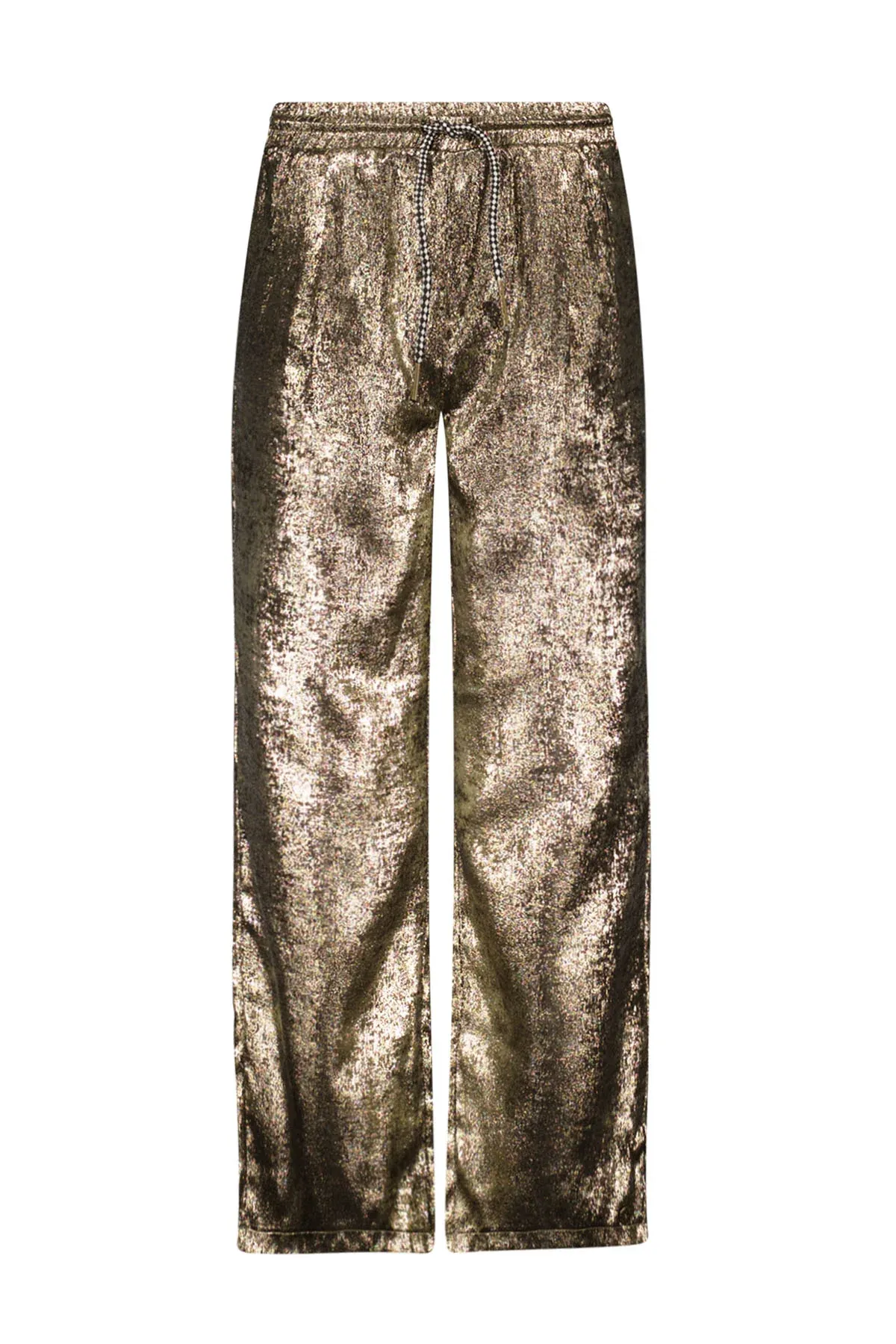 Fine Like Flo denim pants with gold print on top