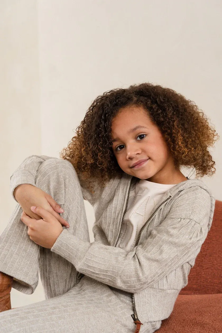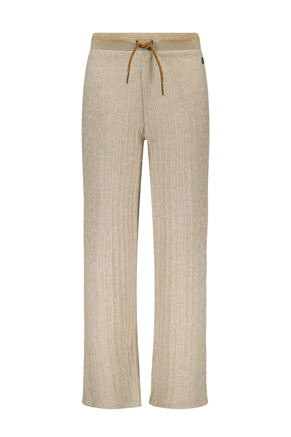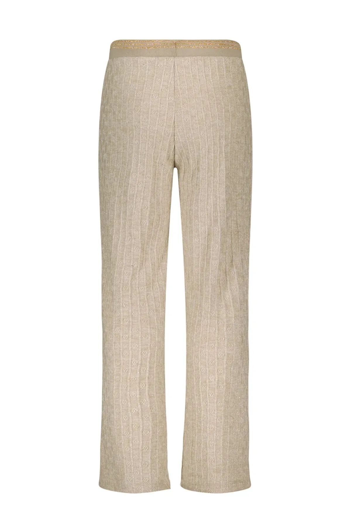 Een straight leg broek van het merk Like Flo in de kleur Kit. Deze toffe broek heeft een all-over streepjes print met daarin kleine details. De broek valt wijd en heeft een elastieken broekband. Combineer hem met het bijpassende vest!