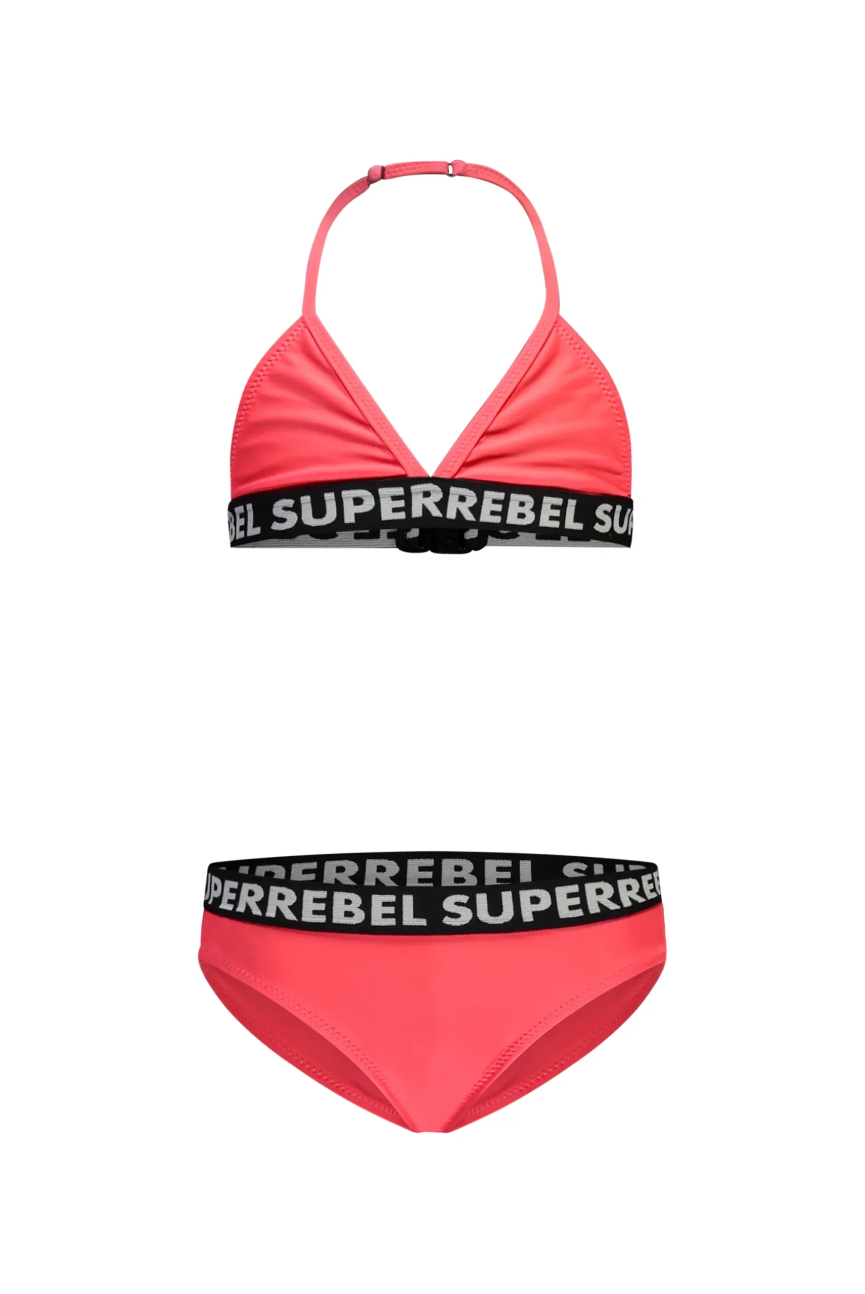 Een basic, coole triangle bikini met een smalle SuperRebel elastische tailleband en top. Verstelbaar, comfortabel en duurzaam. Rood.