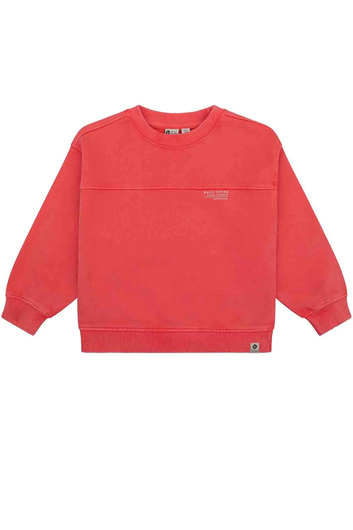 Een stoere sweater van het merk Daily 7 in de kleur Flame Red. Deze trui valt wat groter dan normaal, wat hem extra stoer maakt. De trui heeft een ronde hals en lange mouwen.