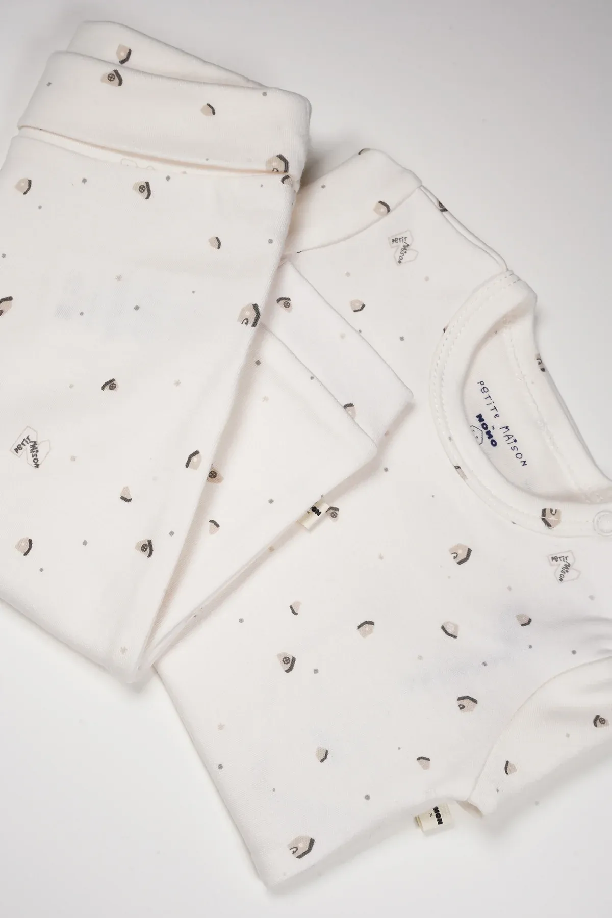 2-delige set van Petite Maison. Het rompertje heeft een ronde hals en lange mouwen met drukknoopjes op de schouder en bij het kruis. Het bijpassende broekje heeft een foldover tailleband voor extra comfort.