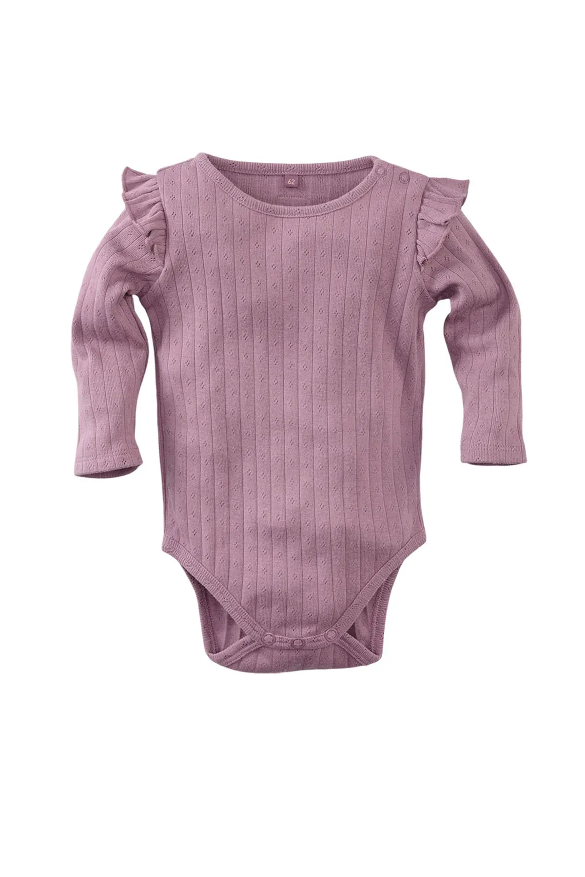 Deze schattige paarse meisjes baby romper is een must-have voor de kleintjes! Het romper heeft stijlvolle ruffel mouwtjes die het een speelse en lieve uitstraling geven. De handige knoopjes bij de hals maken het aan- en uitkleden extra gemakkelijk. Gemaakt van zacht, ademend materiaal, zorgt deze romper voor comfort de hele dag door. Perfect voor zowel dagelijks gebruik als speciale momenten! Een fijne keuze voor je baby’s garderobe.
