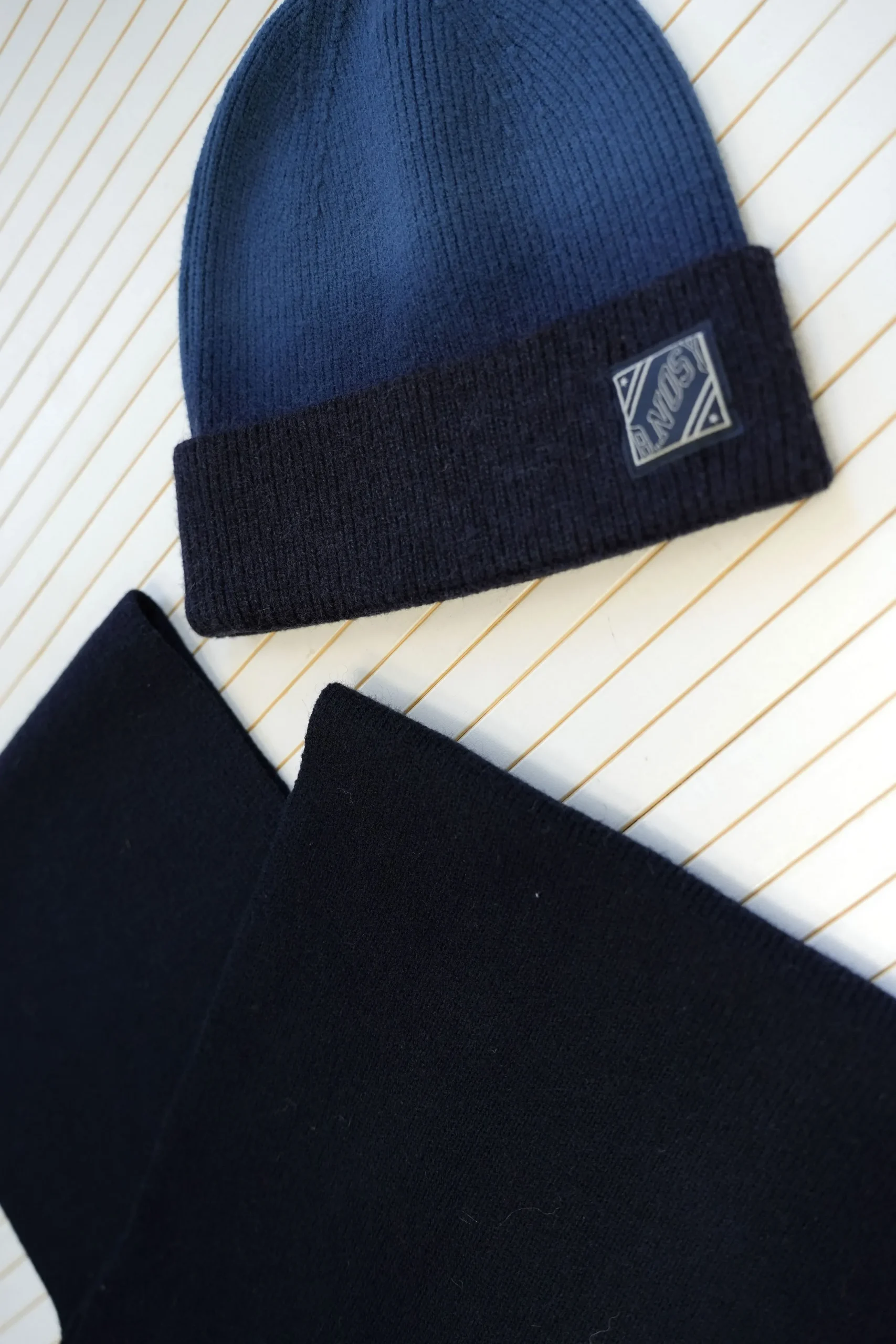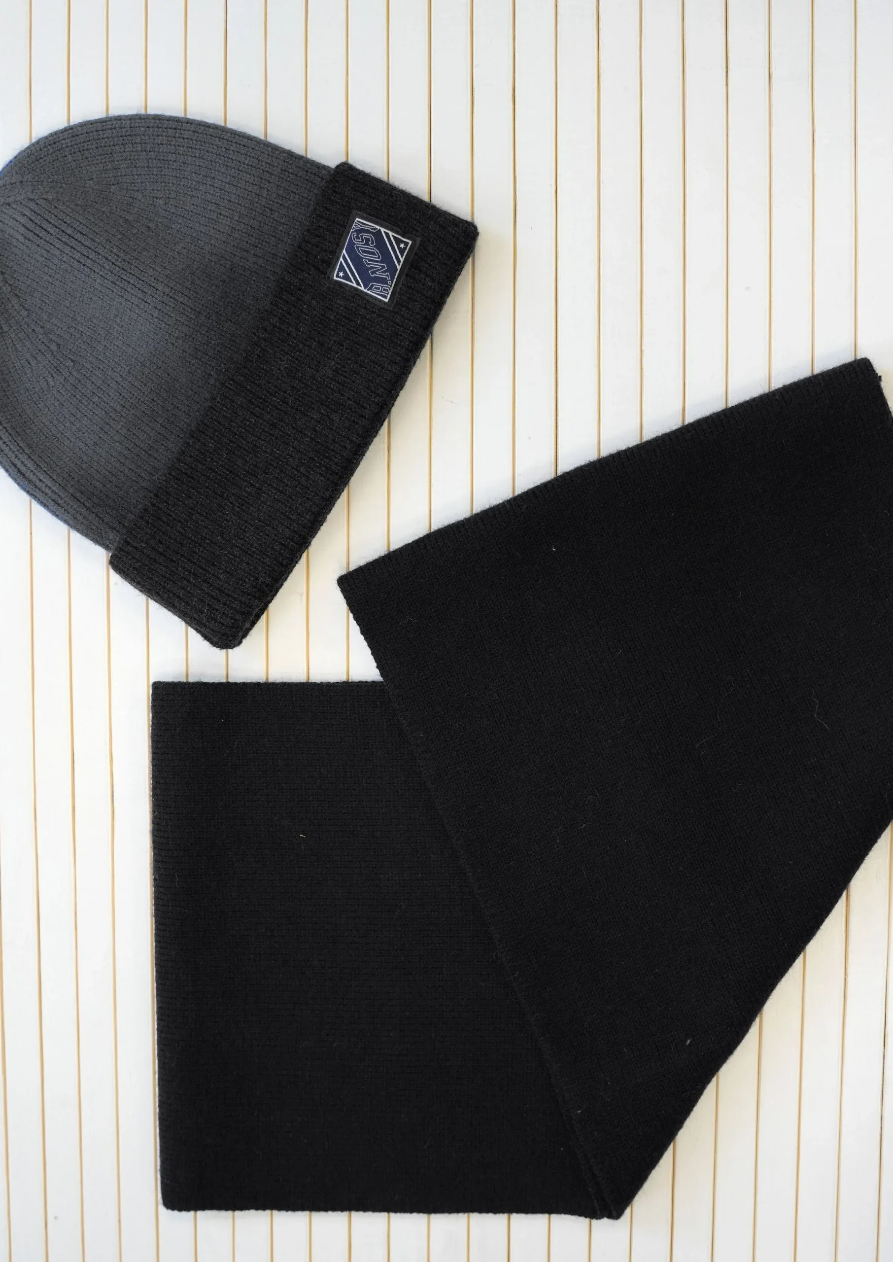 Een sjaal en muts van het merk B.Nosy in de kleuren Black en Navy. Deze set is heerlijk lekker zacht (en warm!) en is super te combineren met de andere items van B.Nosy.