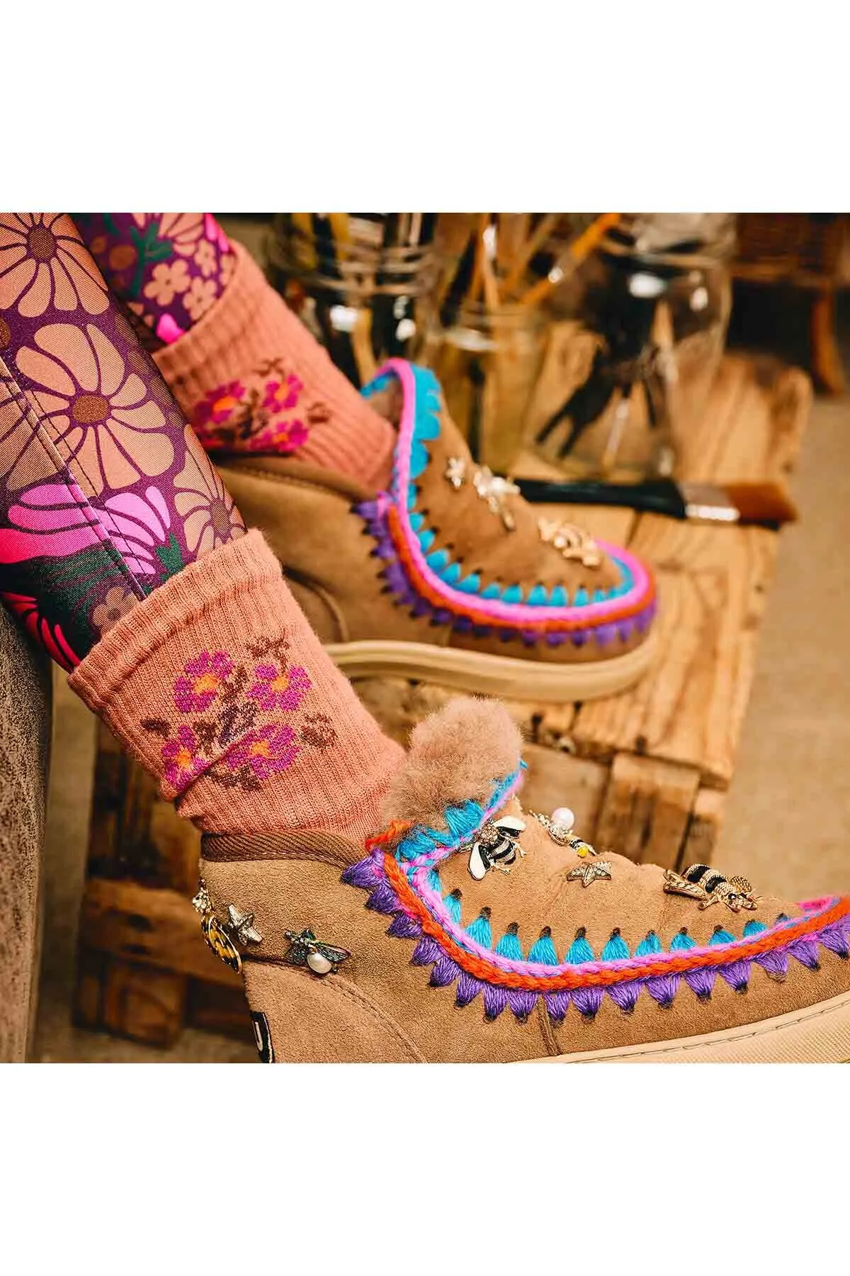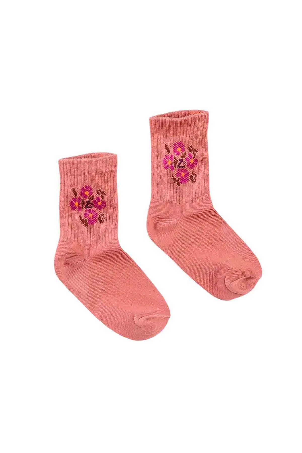 Sokjes met een ingebreid bloemenmotief van het merk Z8 in de kleur Tender Rose brengen een speelse touch aan elke outfit. Perfect om te combineren met je favoriete schoenen!