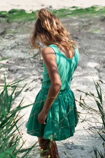 Ballonrokje Stacey in Sea Green is een echte eyecatcher met zijn unieke ballonfit en katoenen stof met 3D-bloemen. Het elastiek in de tailleband zorgt voor een comfortabele pasvorm. Combineer met top Cindy voor een stijlvolle set. Mix it up, Like Flo!