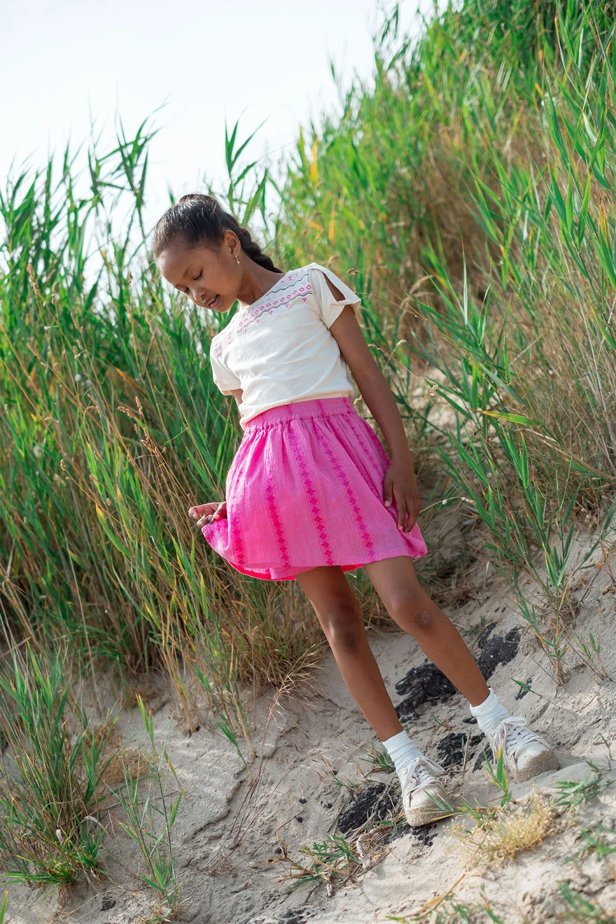 Rokje Suze in fuchsia is een must-have voor de zomer, gemaakt van een mooie structuurstof met bloemetjes. Het rokje heeft een ingebouwd broekje voor extra comfort, ideaal voor actieve zomerdagen. Maak de look compleet door het te combineren met de bijpassende top Carmen voor een trendy set. Mix it up, Like Flo!