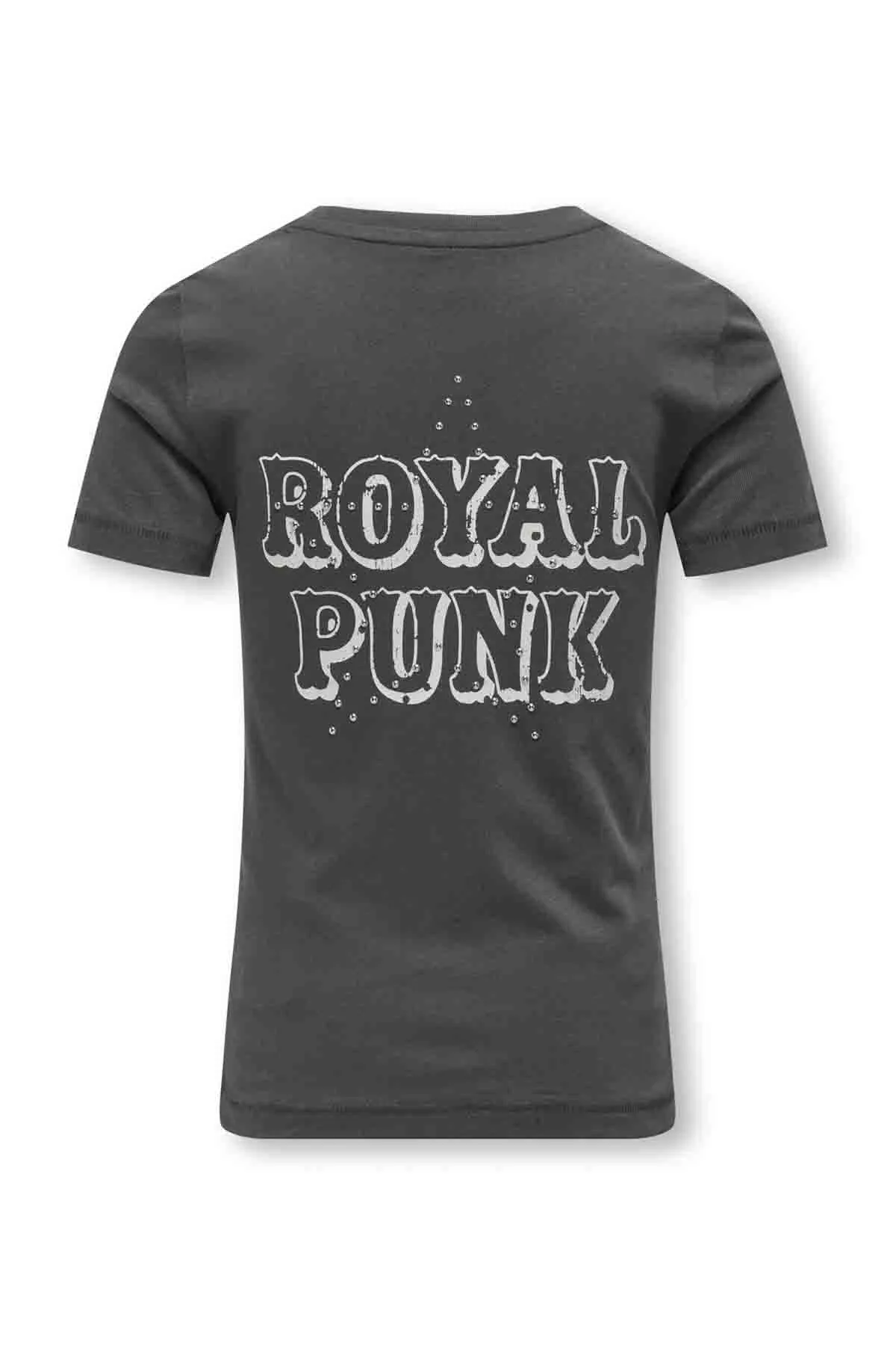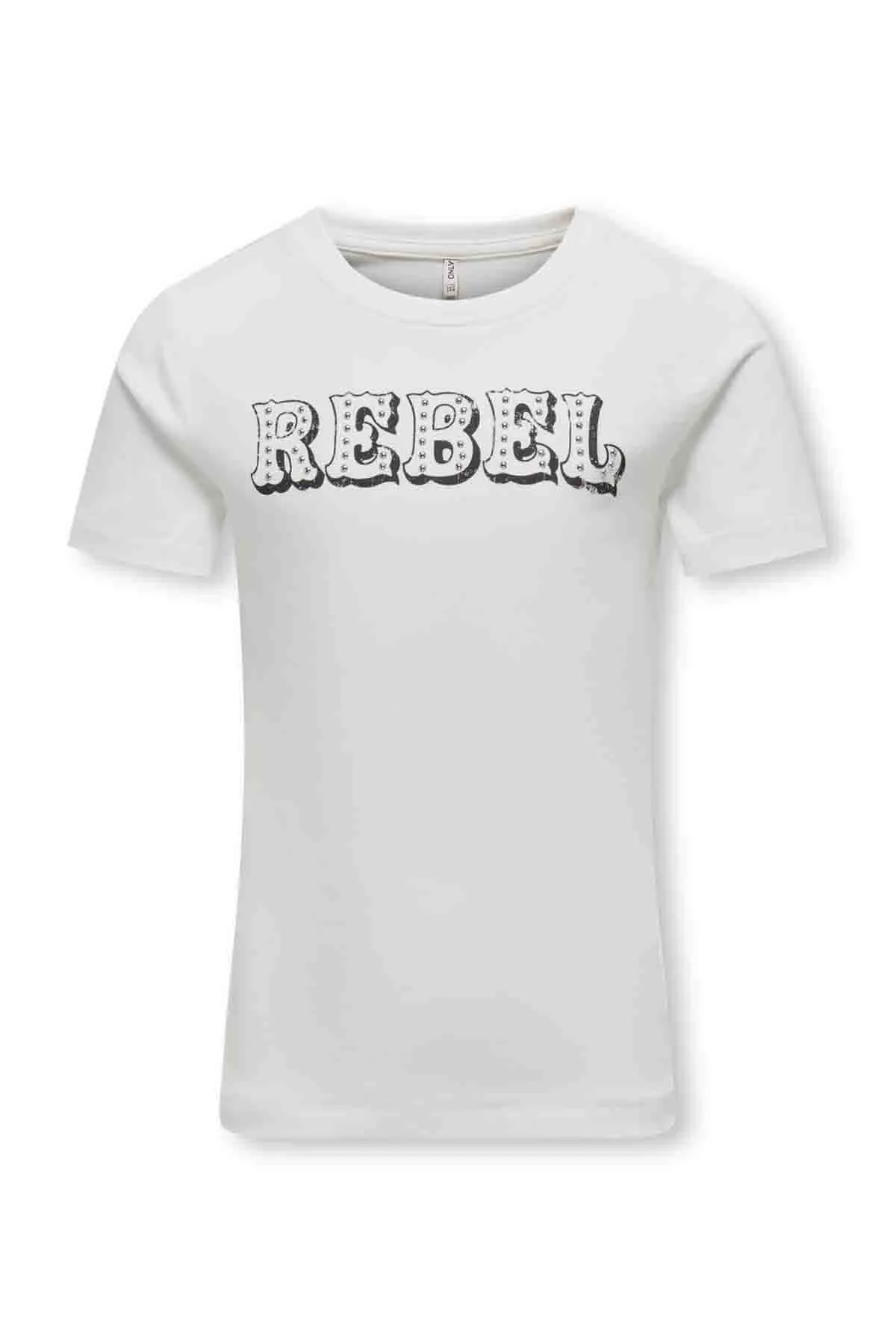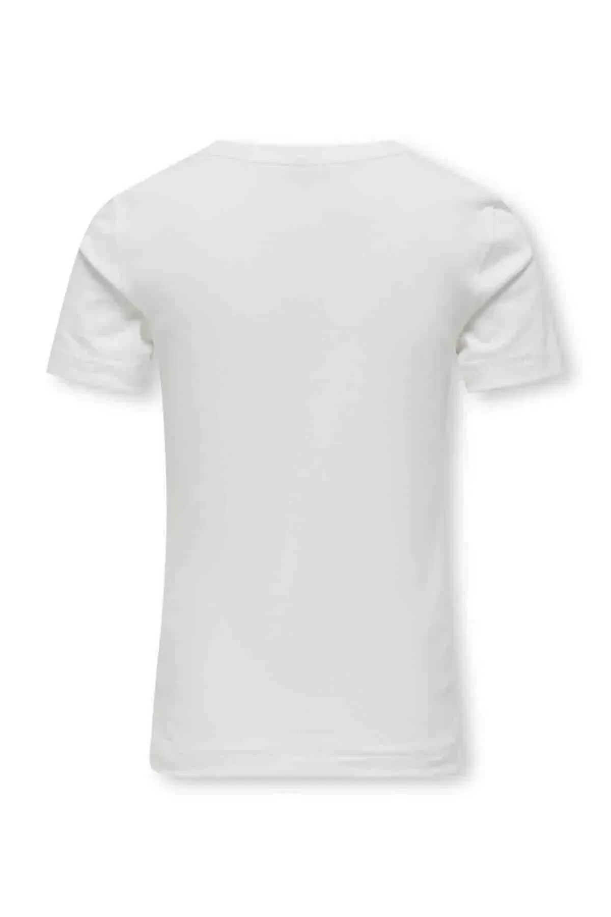 Stoer T-shirt voor meiden van het merk Kids Only. Dit shirt met ronde hals en korte mouw is verkrijgbaar in twee varianten vanaf maat 122-128 t/m maat 158-164.