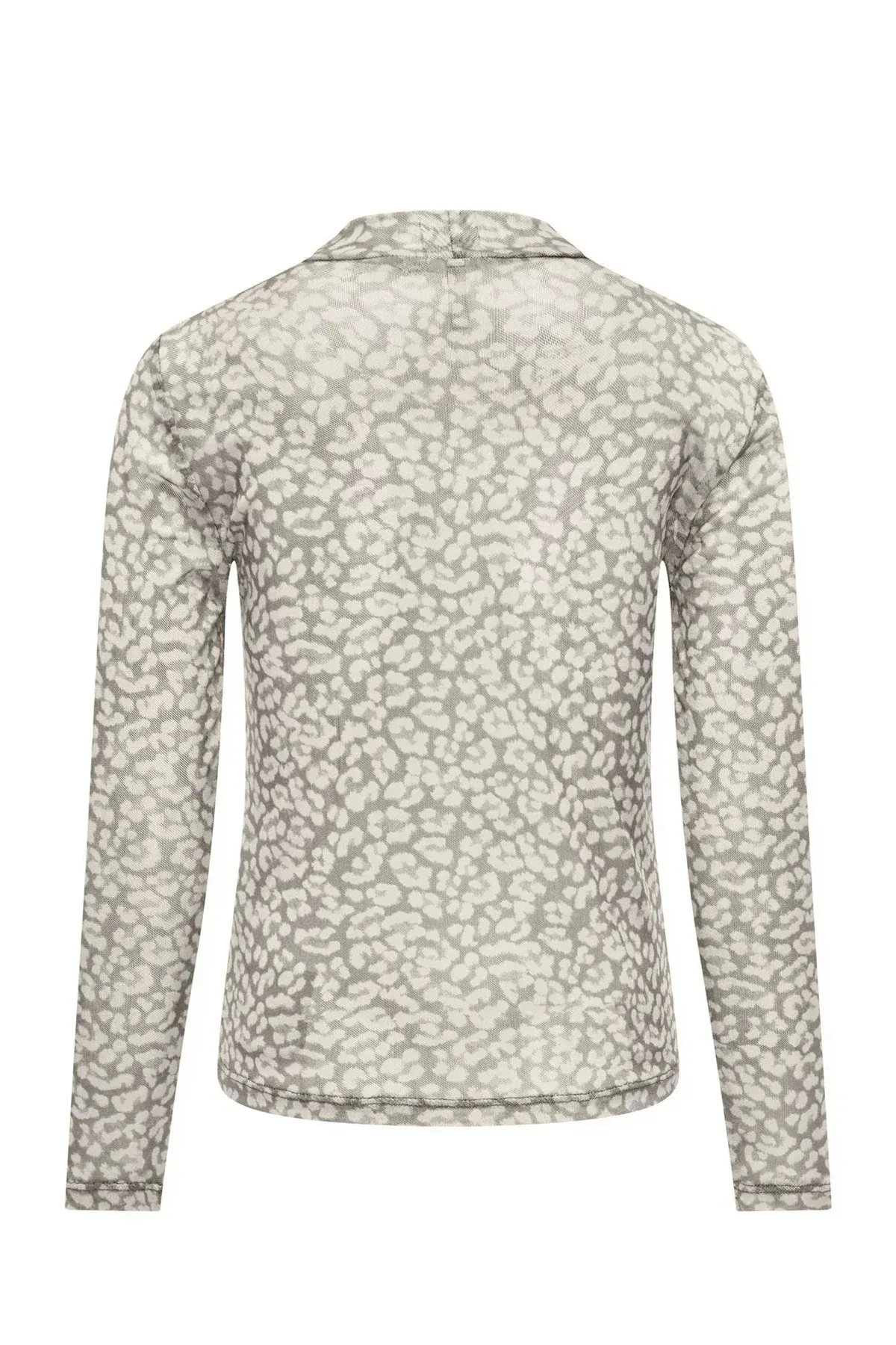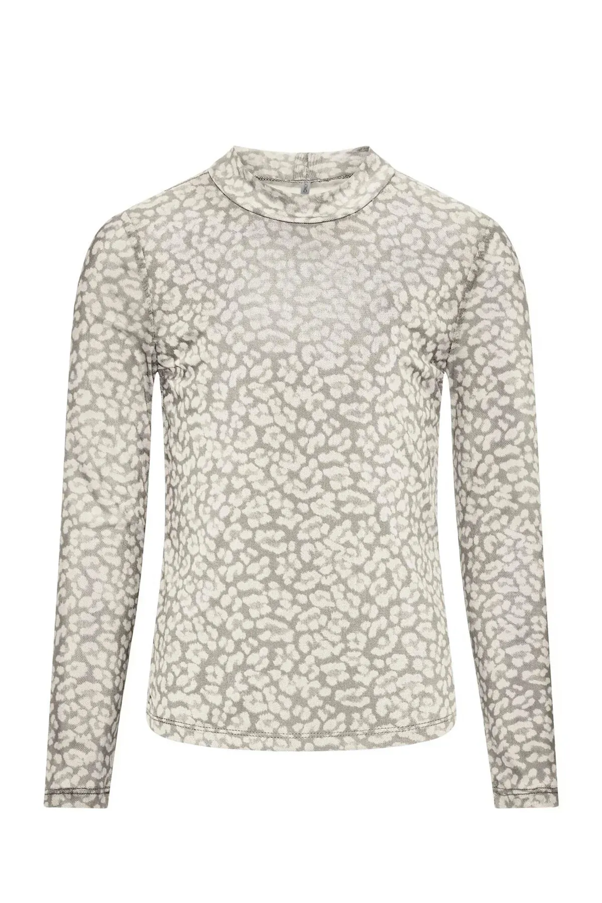 Een top van het merk Kids ONLY in de kleuren Black/Phantom en Pumice Stone. Deze longsleeves hebben doorzichtige mouwen en een opstaande hals. De all-over panter print maakt het een eye catcher in je kledingkast!
