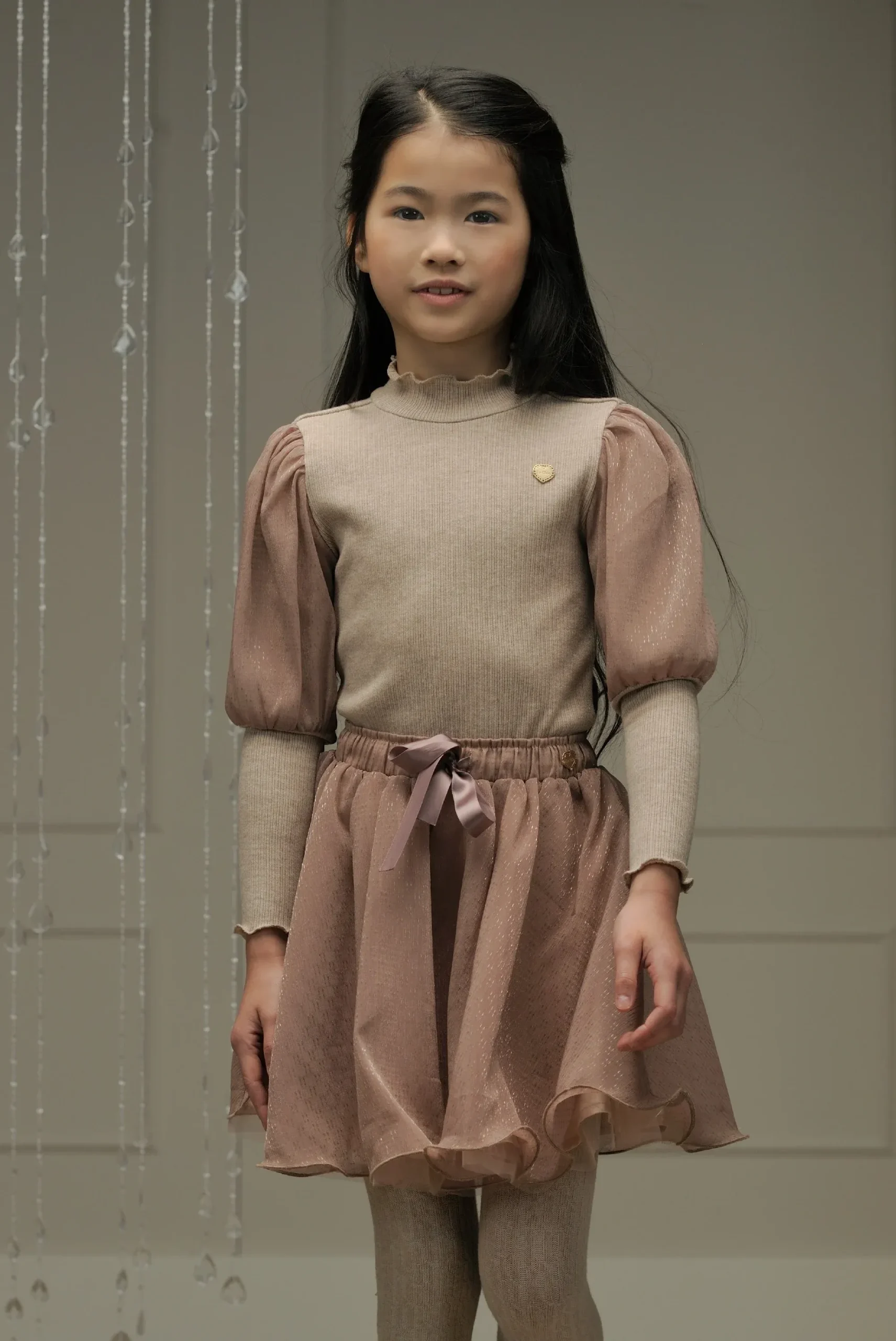 Fijn gebreide top met lange mouwen met voile stof van Le Chic.